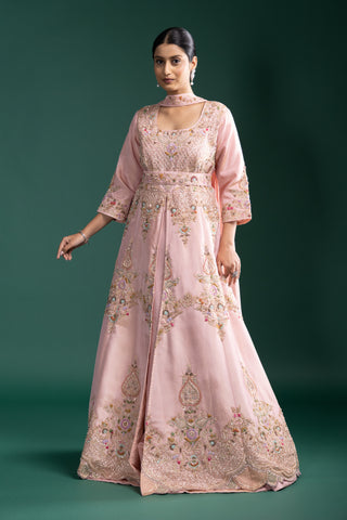Blush Peach Silk Gown with Heavy Zardozi and Resham Hand Embroidery