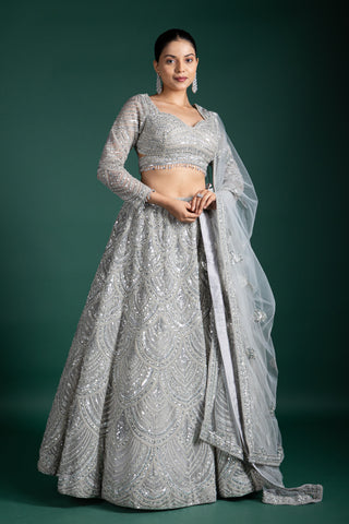 Misty Aqua Blue Anarkali Lehenga with Heavy Mirror Work