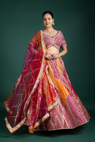 Lilac LavenderJacket Lehenga with Vibrant Multi-Coloured Hand Embroidery