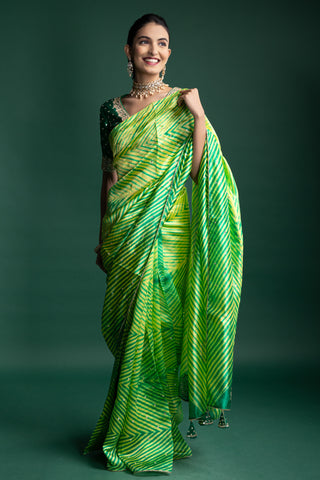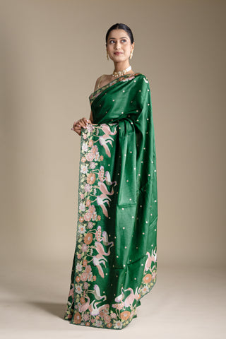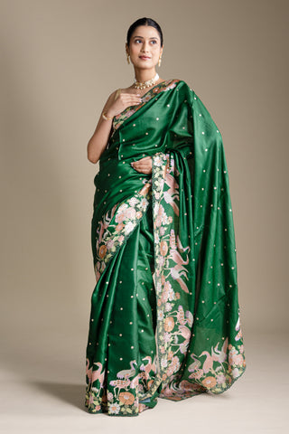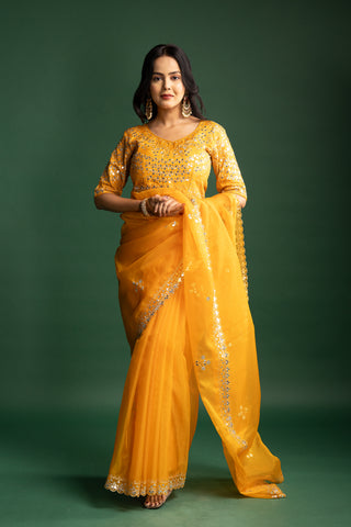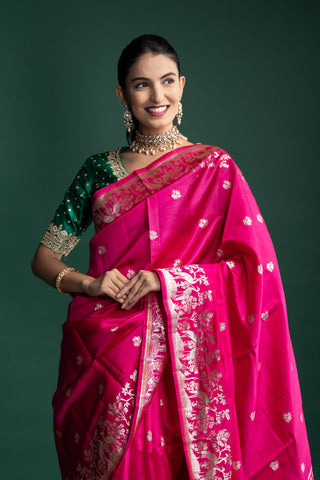 Rani Rose Organza Saree with Regal Handcrafted Gilded Embroidery