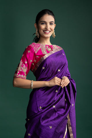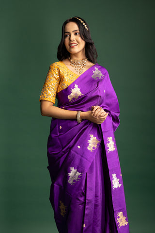 Majestic Amethyst Purple Silk Saree with Traditional Golden Art Motifs