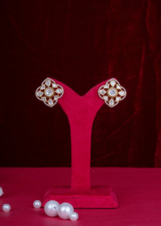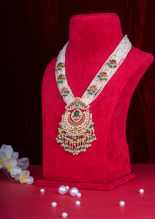 Traditional Rani Haar Pearl Mala with Kundan Pendant & Lotus Motif Jhumkas