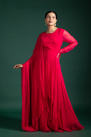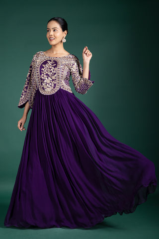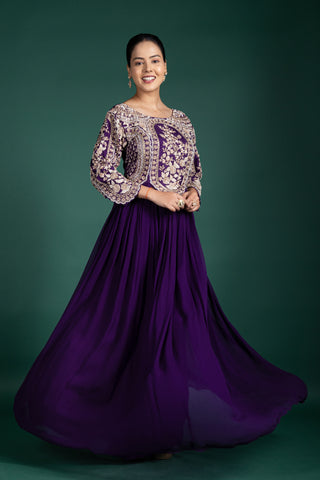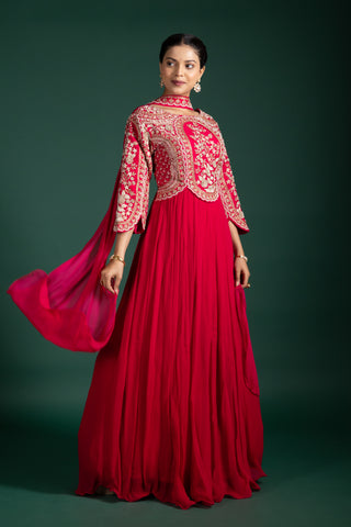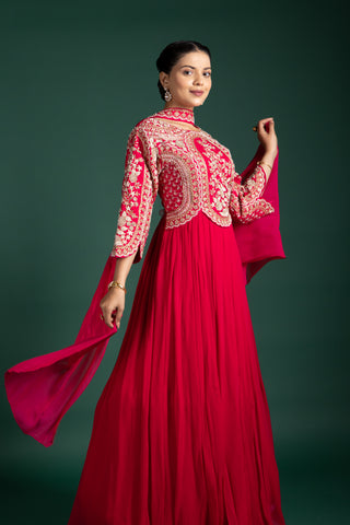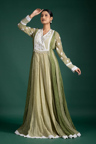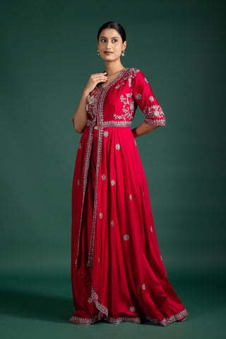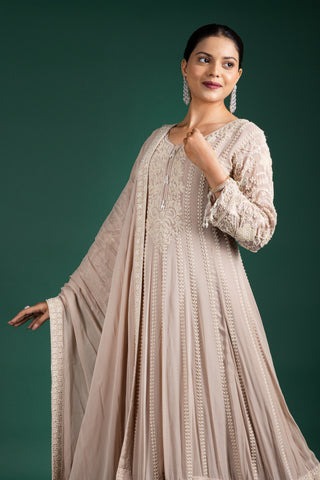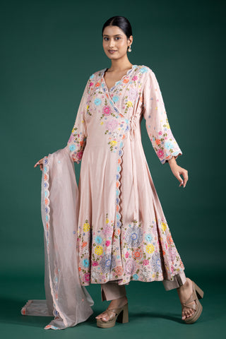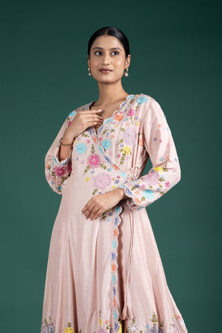 Blush Rosé Wrap Anarkali With Floral Embellishments