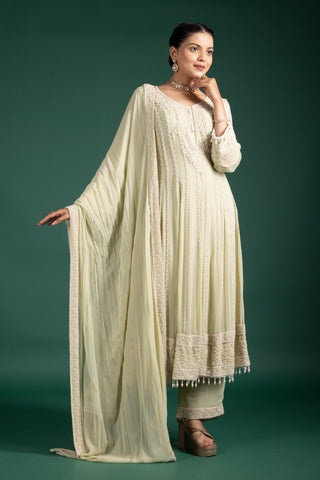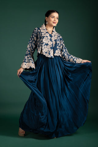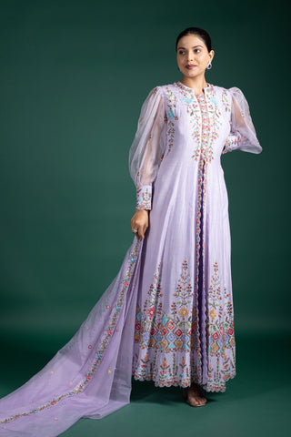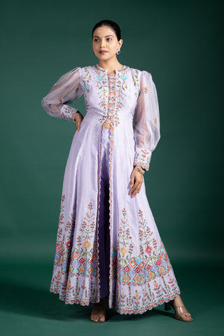 Ivory Bloom Floral Embroidered Long Jacket Anarkali Set