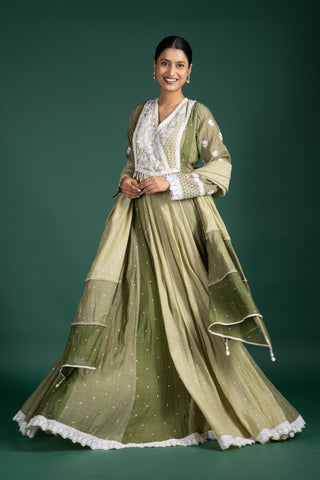Lemon Sorbet Anarkali With Subtle Mirror Accents