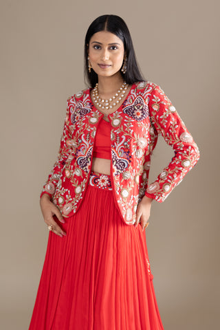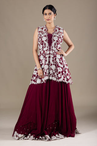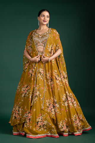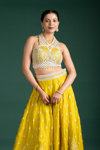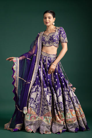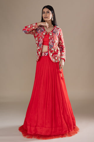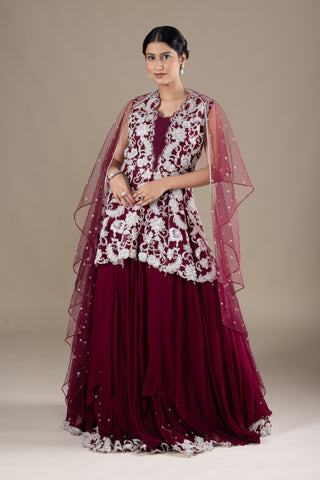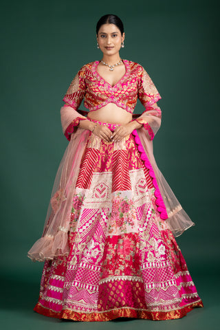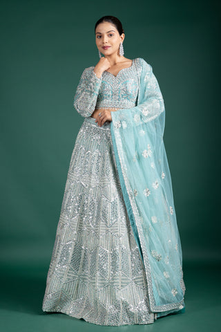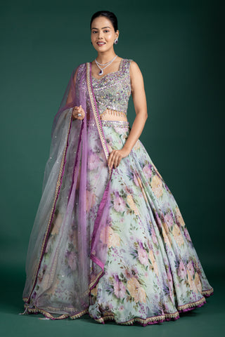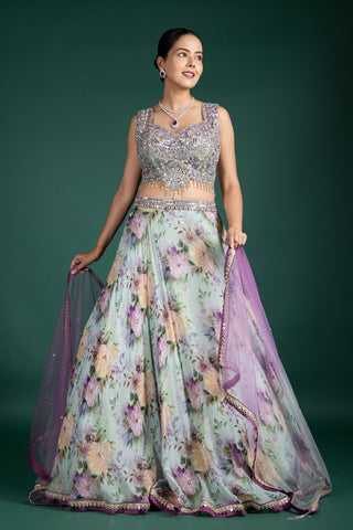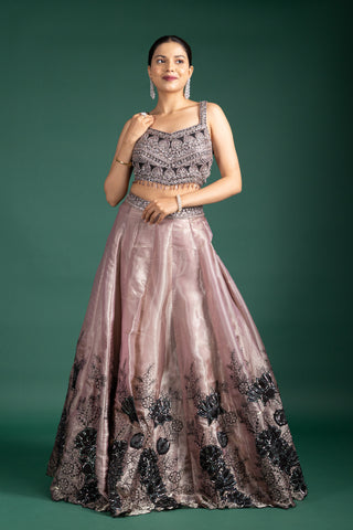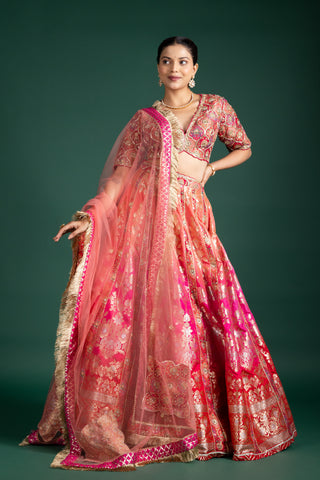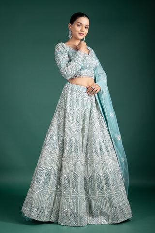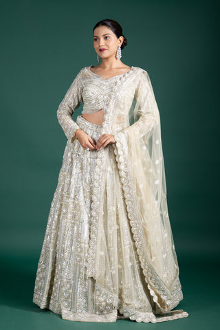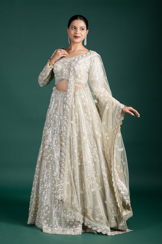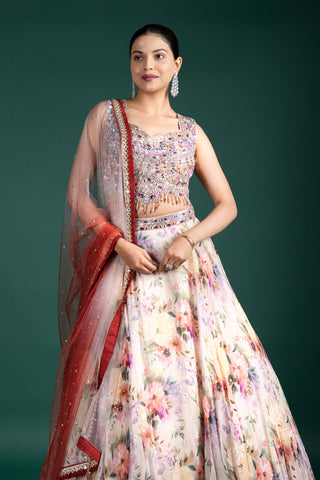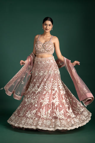 Blush Ivory Floral Embellished Lehenga with Tulle Dupatta