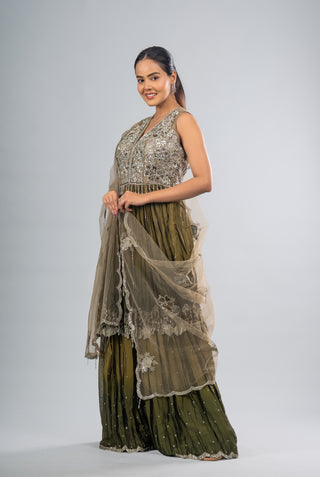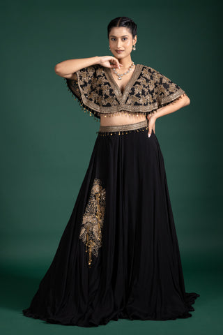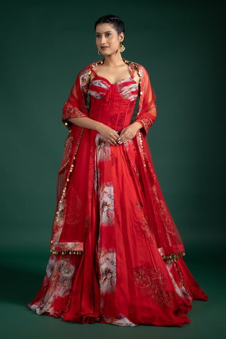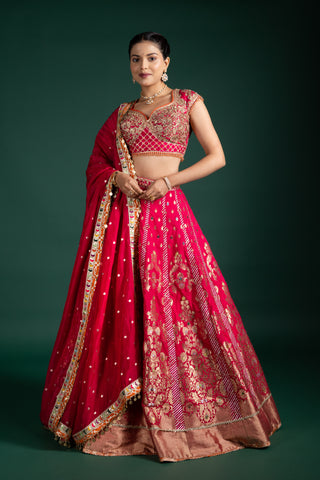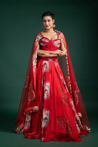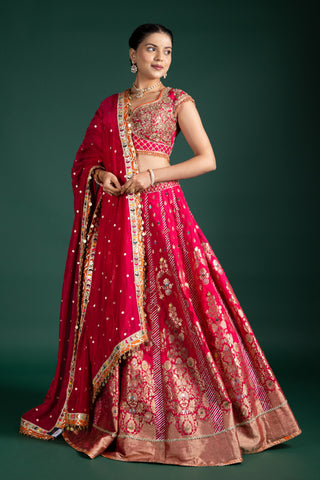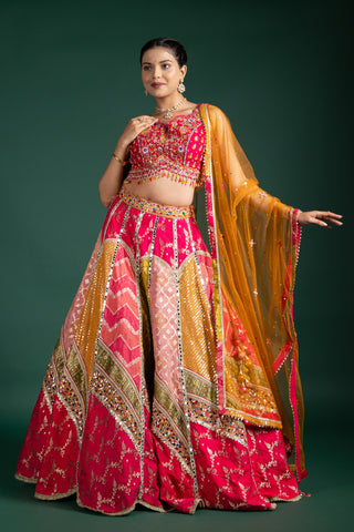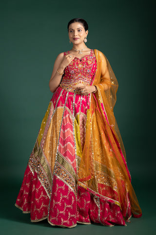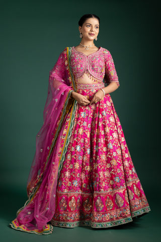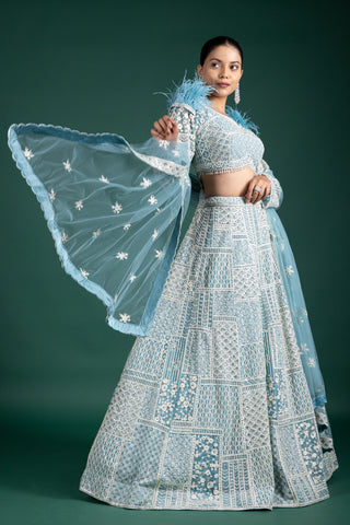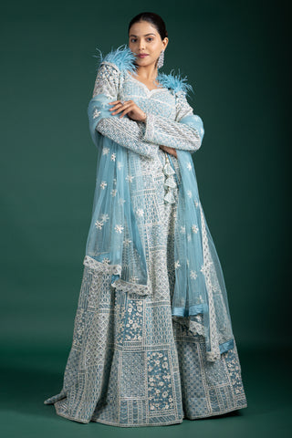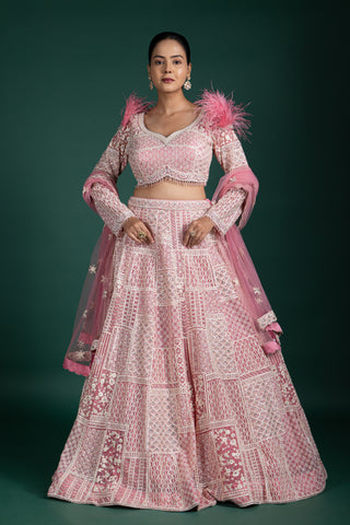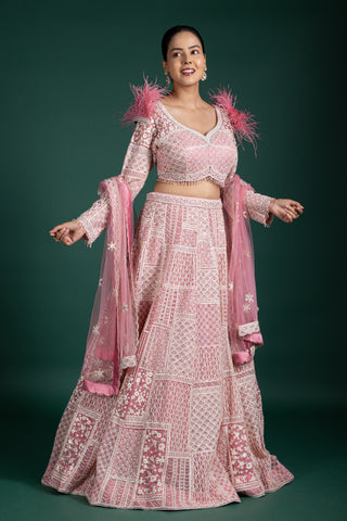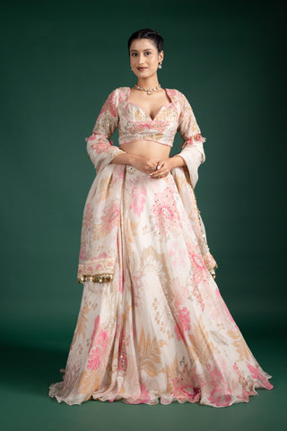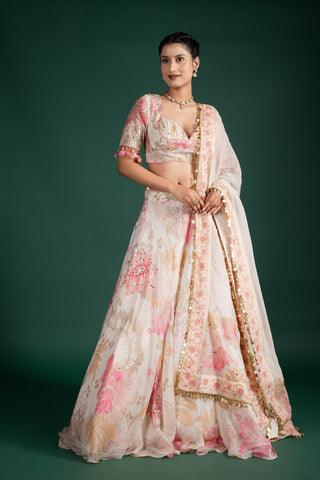 Blush Ivory Floral Embellished Lehenga with Tulle Dupatta