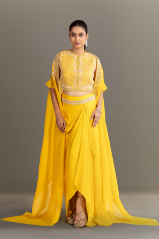 One-Shoulder Soft Gold Ivory Cape Set