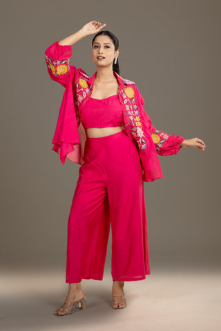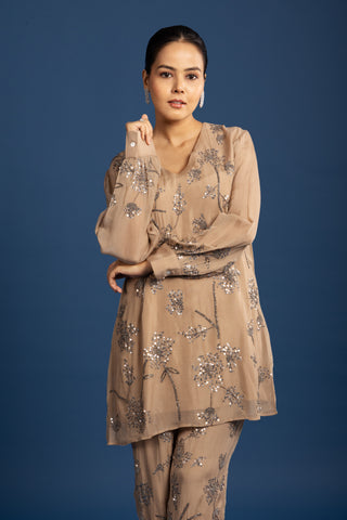 Elegant Taupe Sequin Embellished Floral Co-ord Set