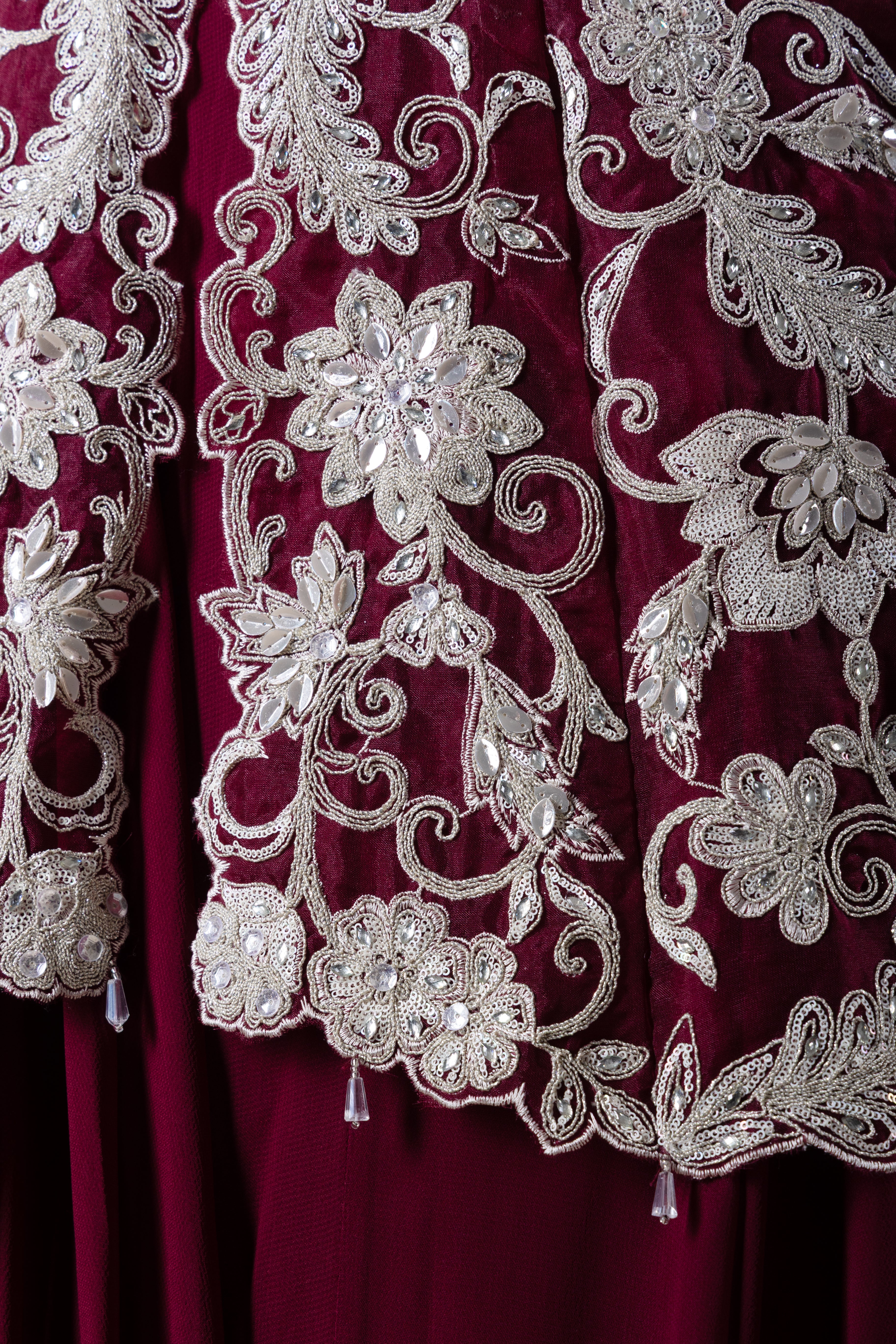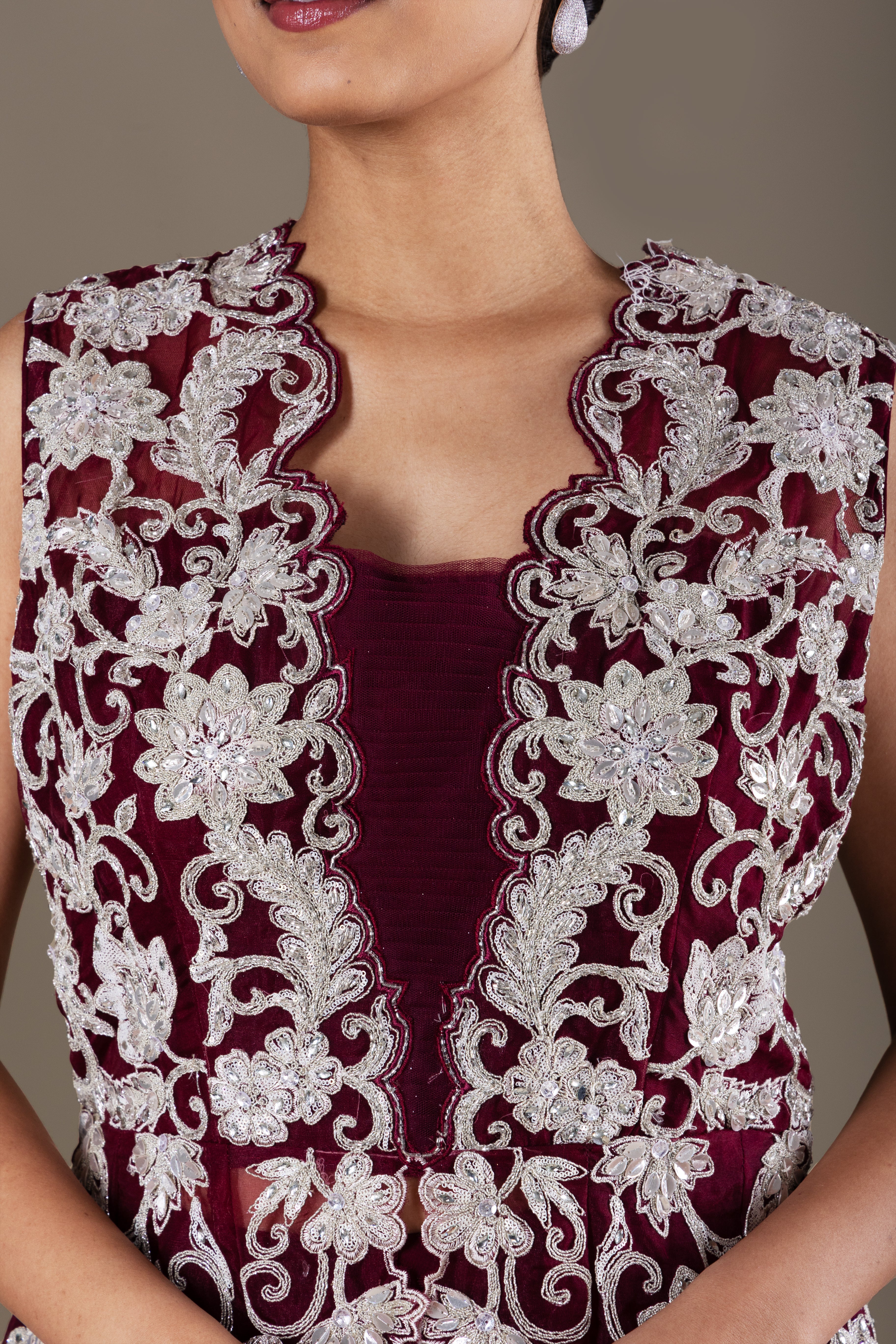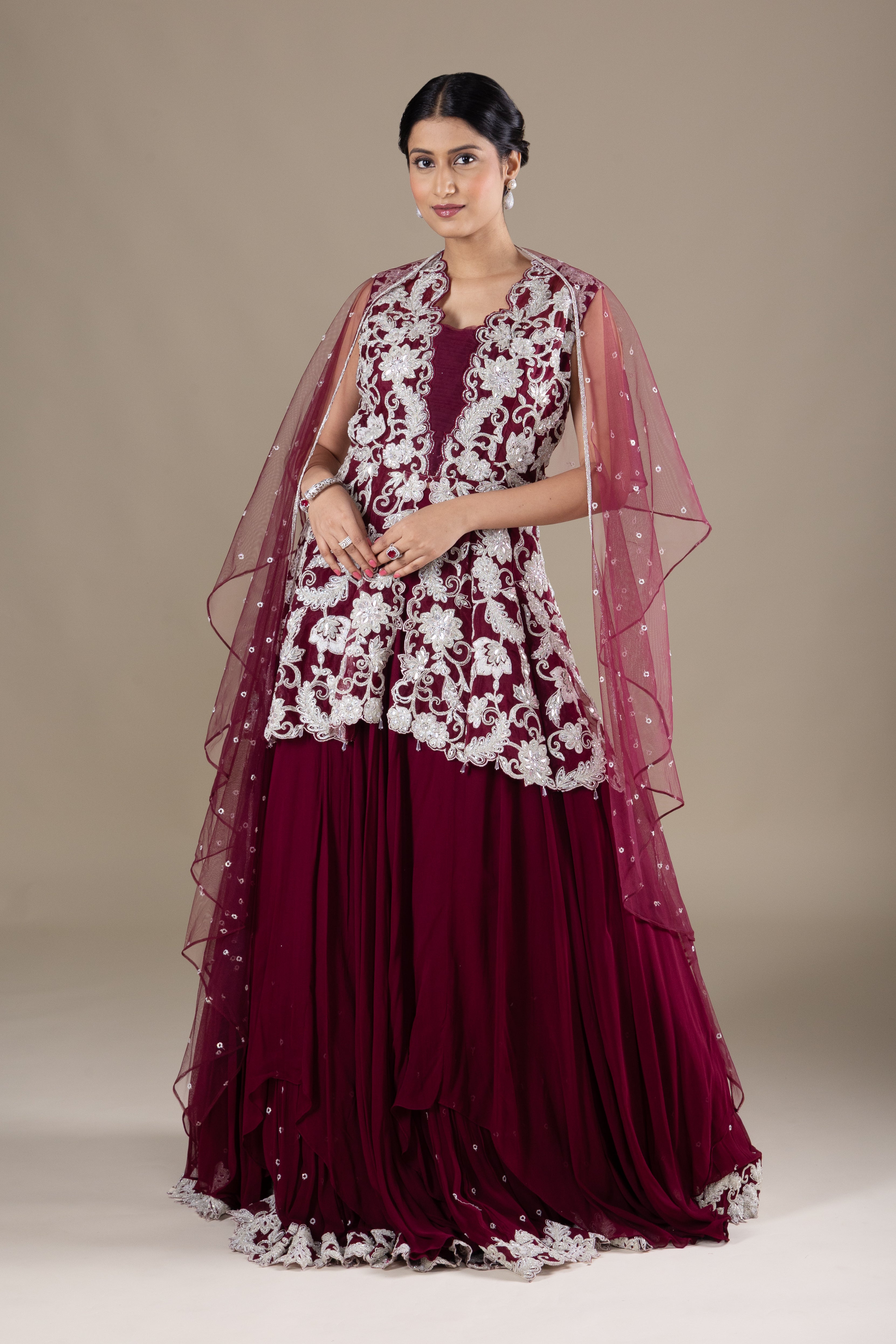 Plum Berry Peplum Ensemble with Silver Hand Embroidery