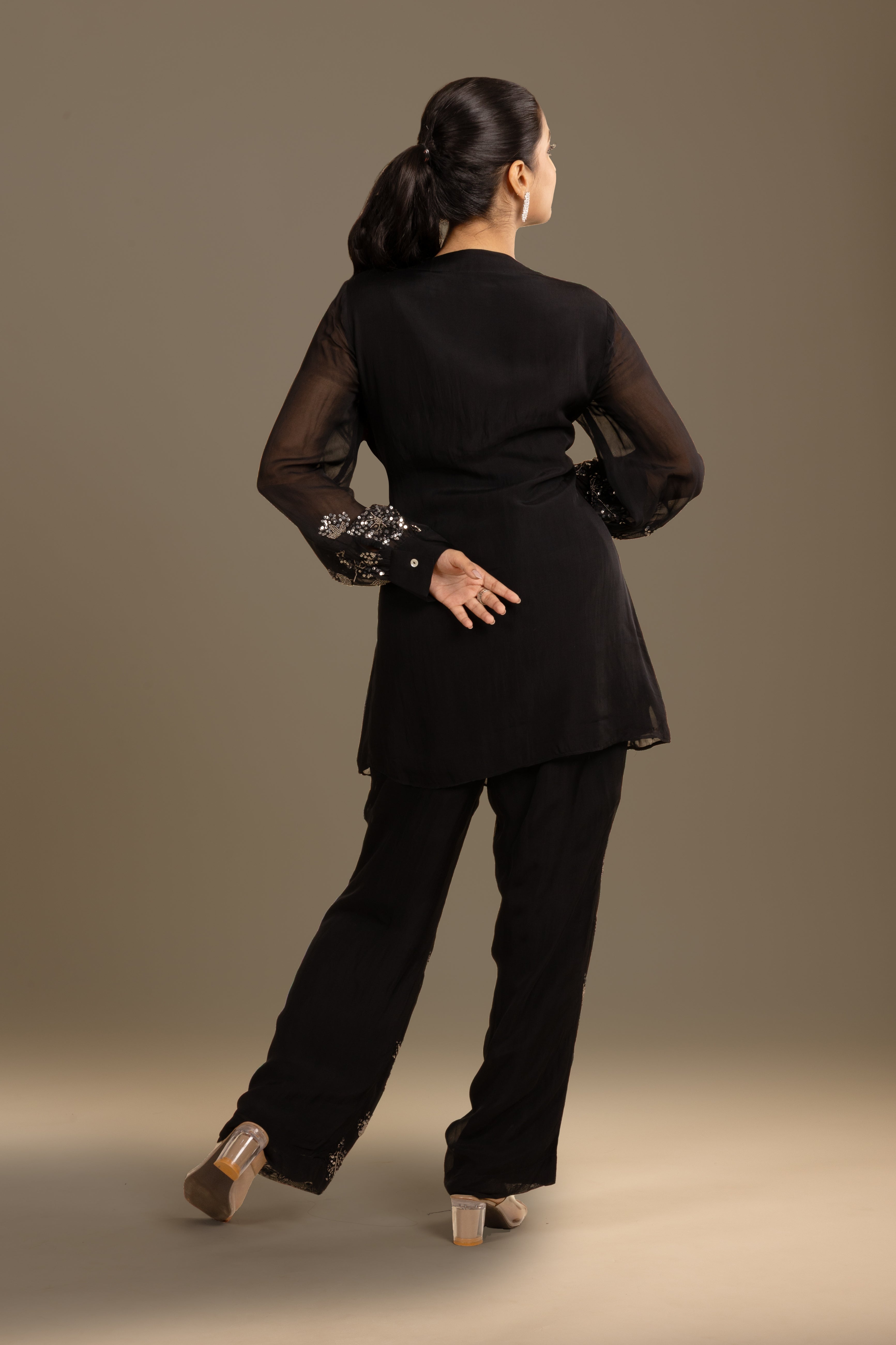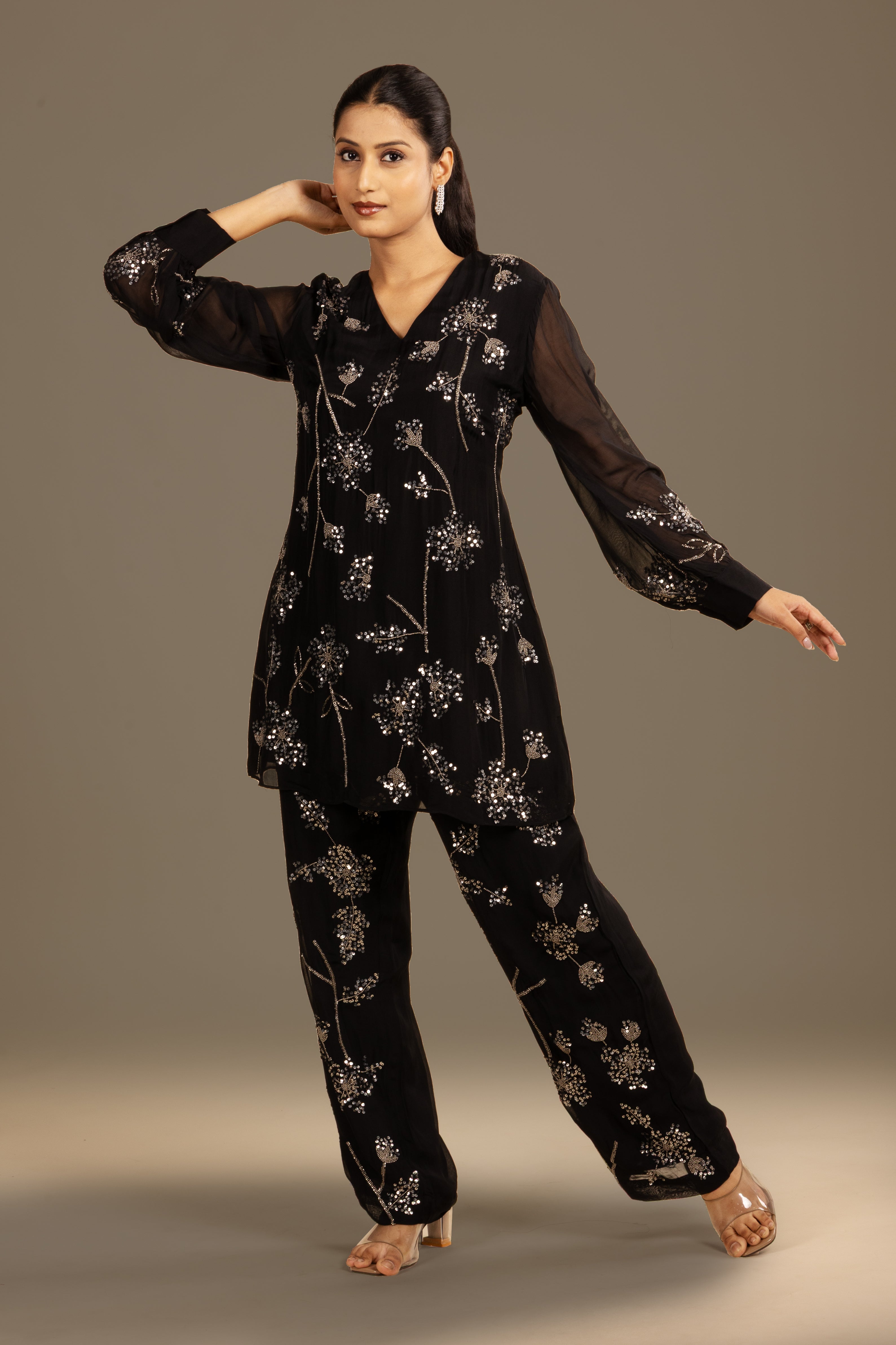 Shine with understated elegance in this Midnight Glimmer kurta set, adorned with delicate sequin embroidery for a luxe festive look.