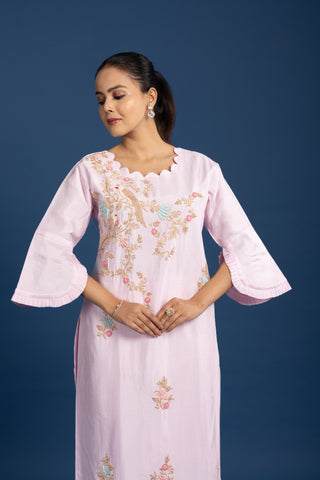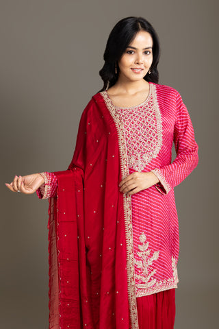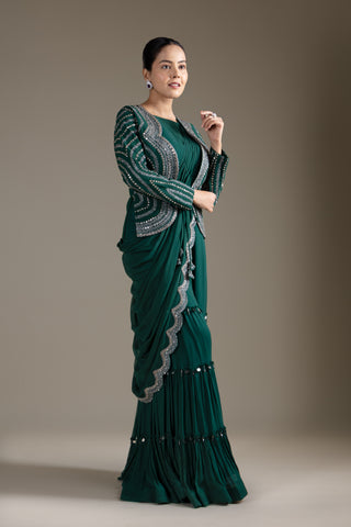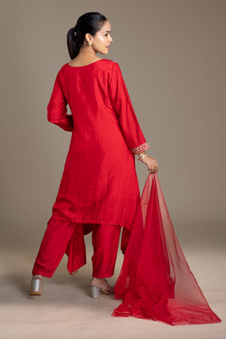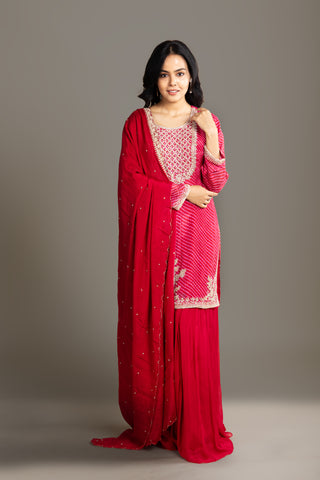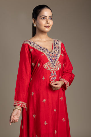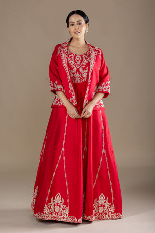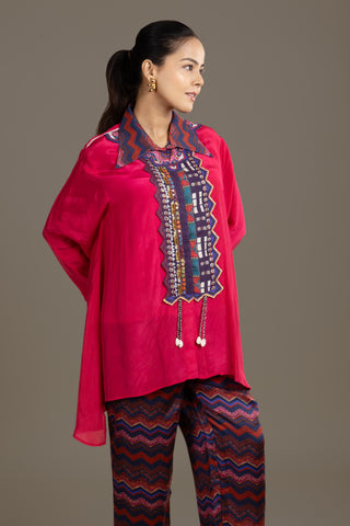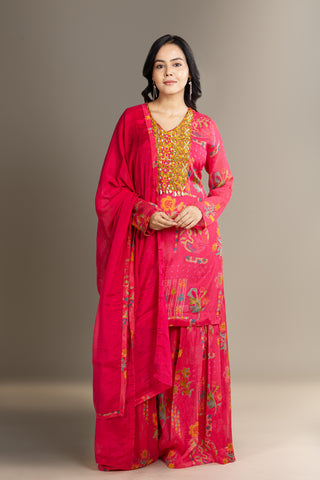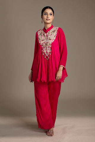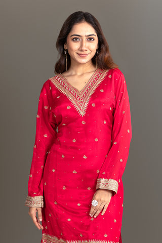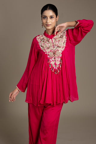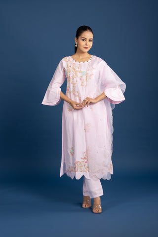 Rani Rose Organza Saree with Regal Handcrafted Gilded Embroidery