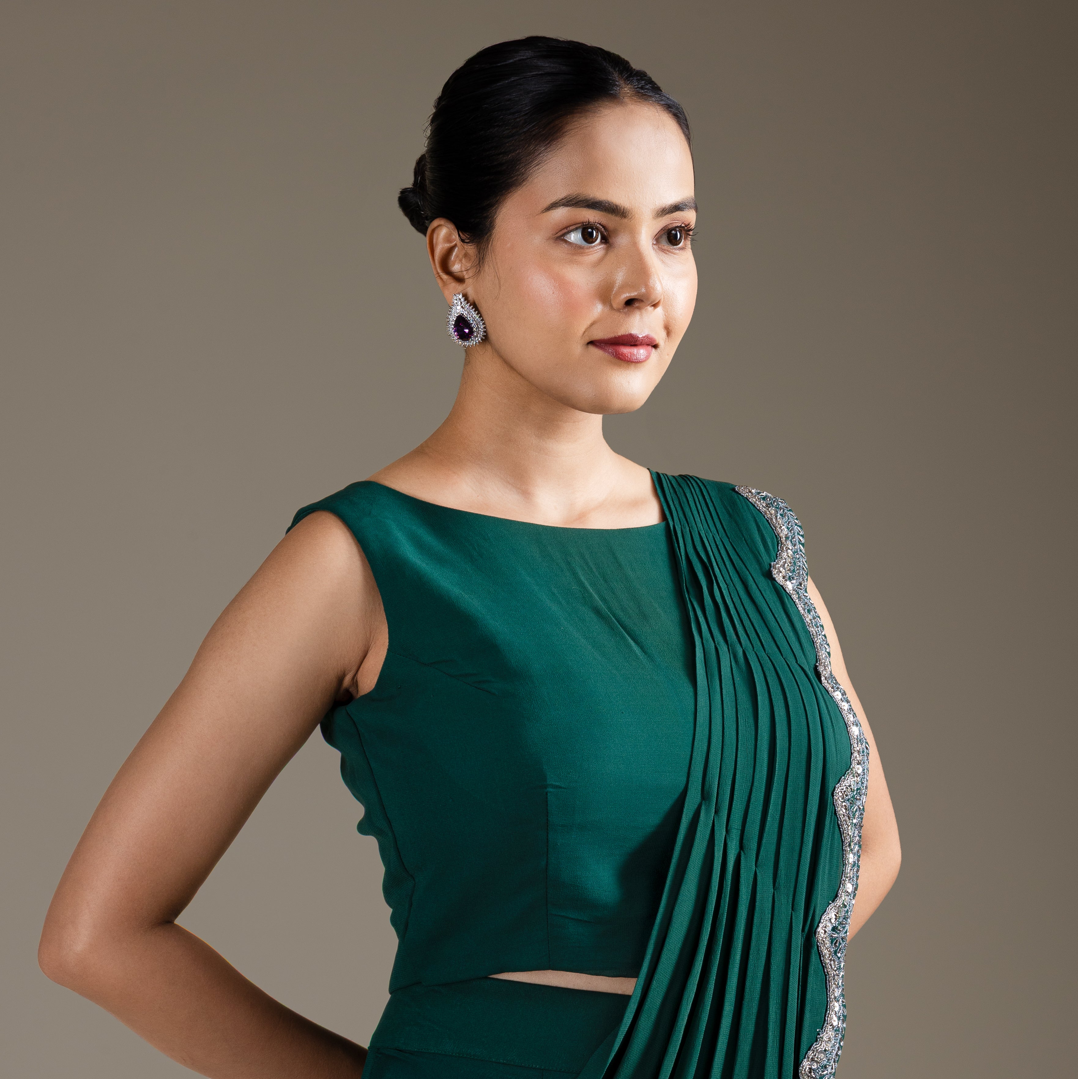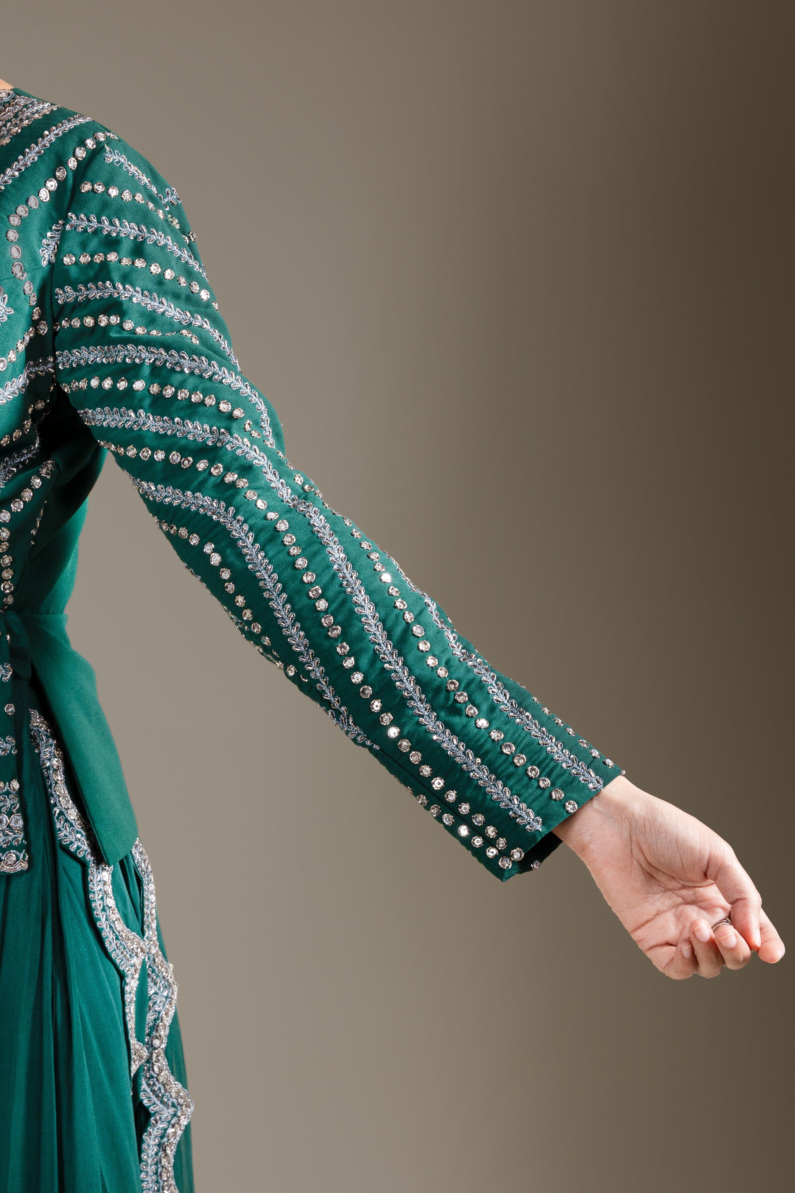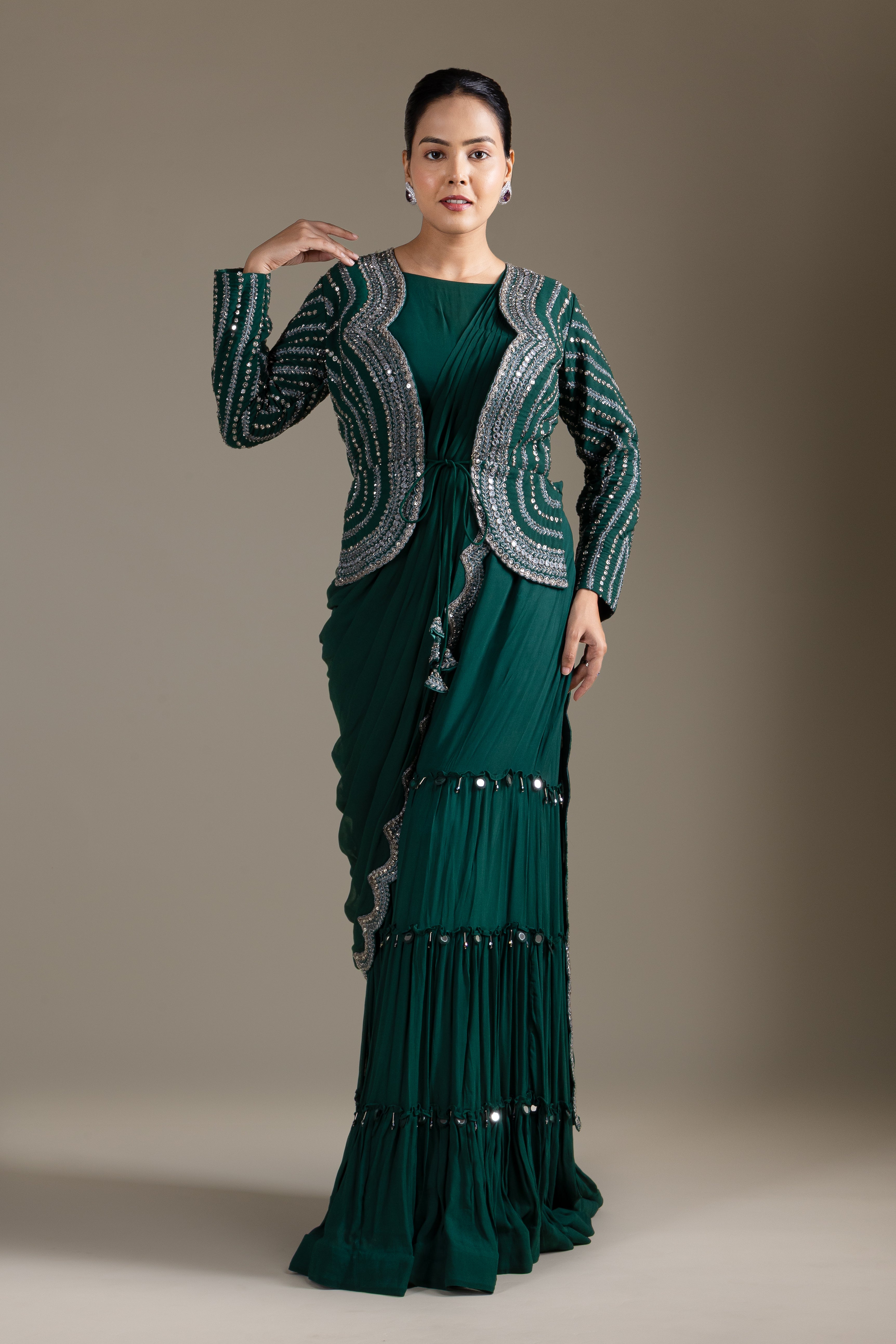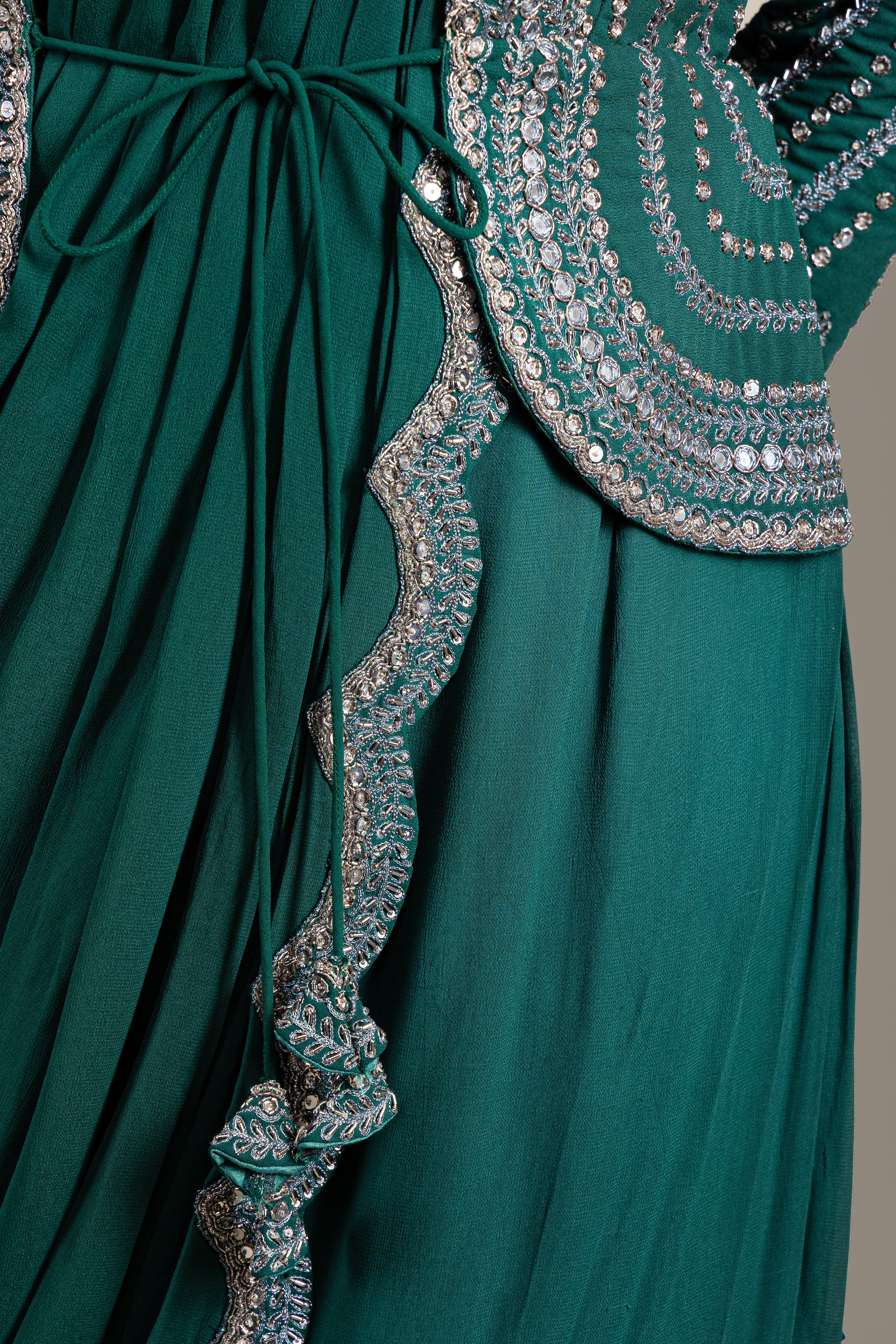 Emerald Illusion Mirrored Jacket with Pre-Draped Garara & Crop Top Set