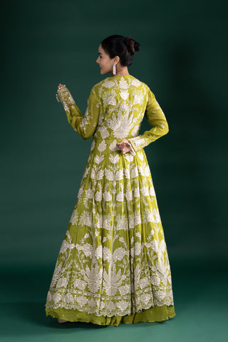 Vibrant Fuchsia Drape Skirt Set with Intricate Thread Embroidery