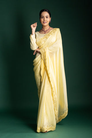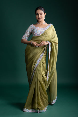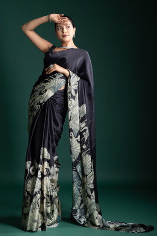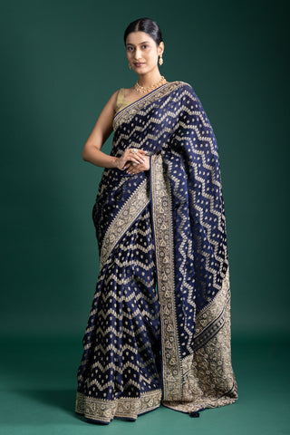 Midnight Teal Luxe Designer Saree with Hand Embroidered Borders