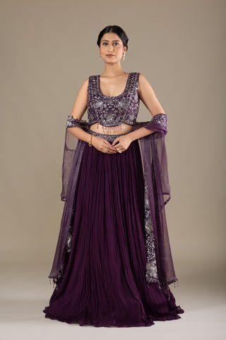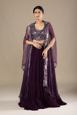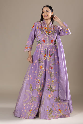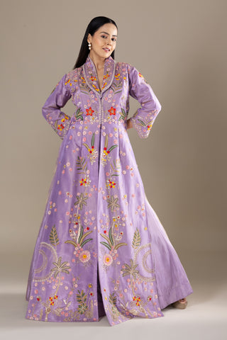 Lilac LavenderJacket Lehenga with Vibrant Multi-Coloured Hand Embroidery