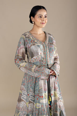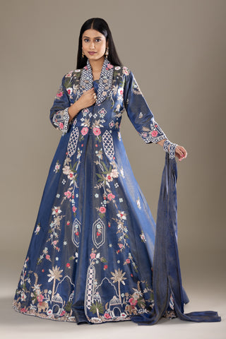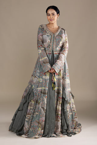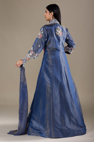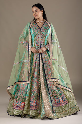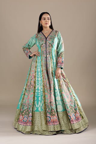 Misty Aqua Blue Anarkali Lehenga with Heavy Mirror Work