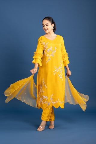 Golden Yellow Silk Kurta Set