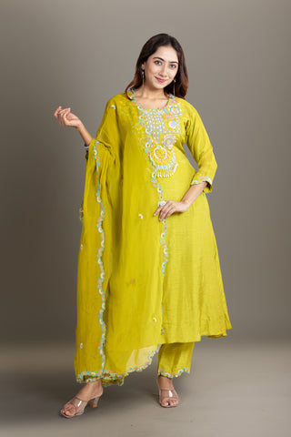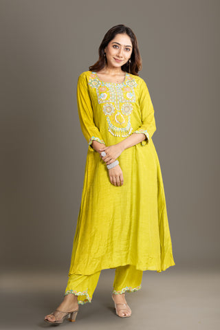 Exquisite Citrus Blossom Green Kurta Set