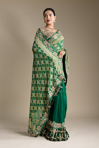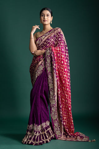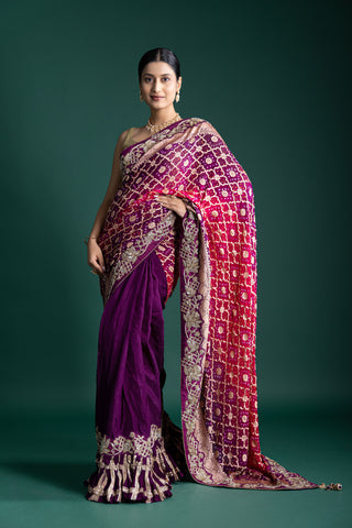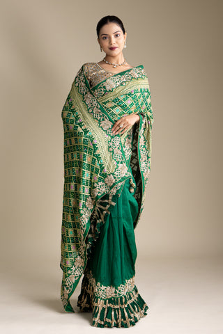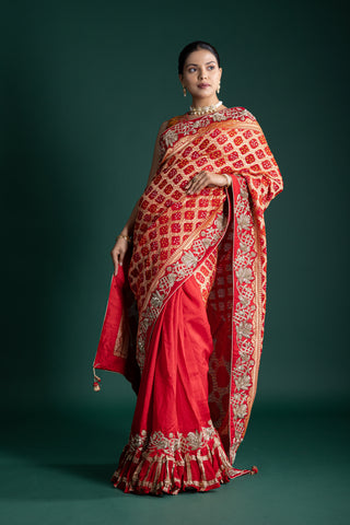 Fiery Scarlet Bandhani Saree with Luxurious Gota Patti Detailing