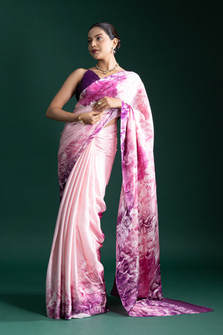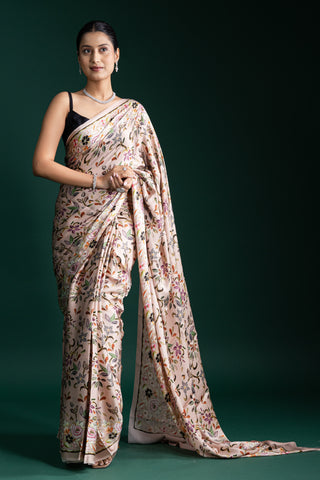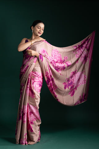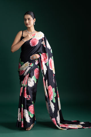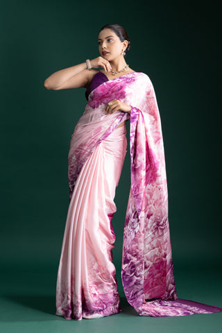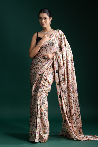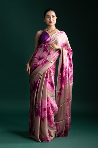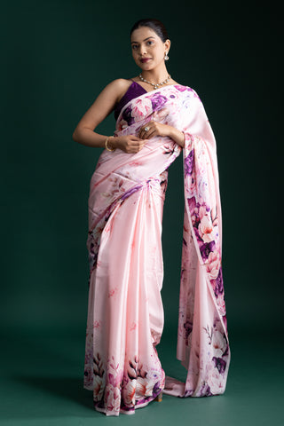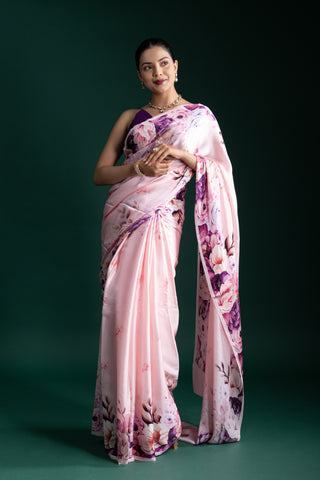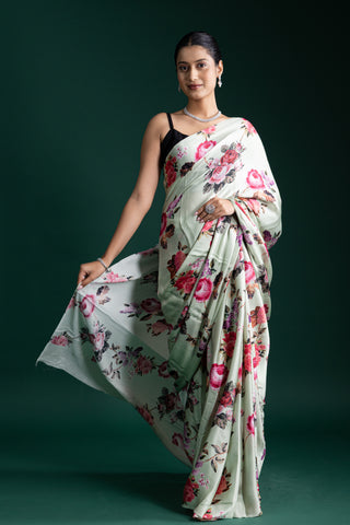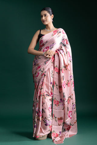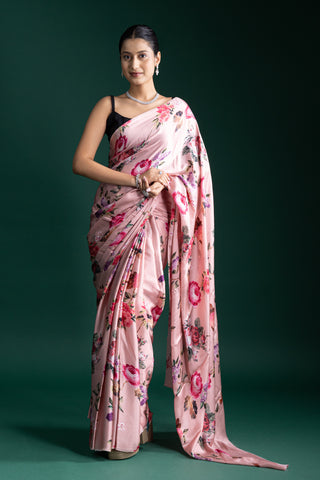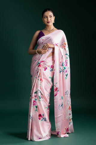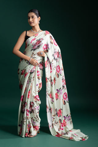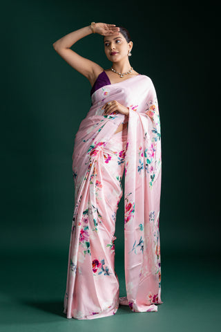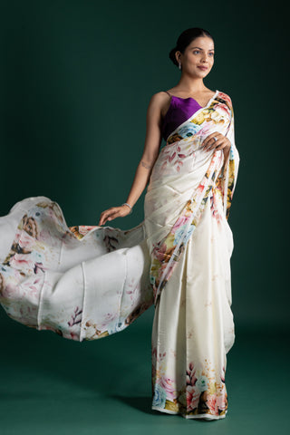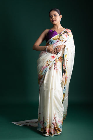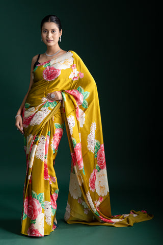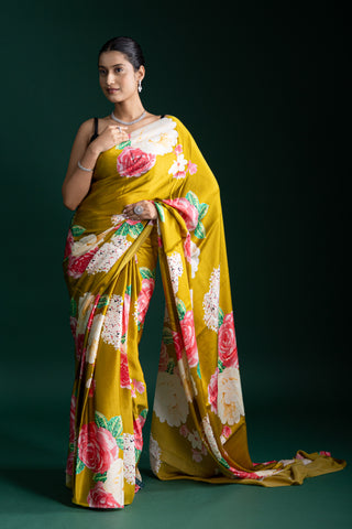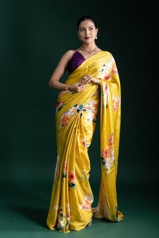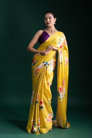 Radiant Yellow Saree with Delicate Pastel Floral Prints