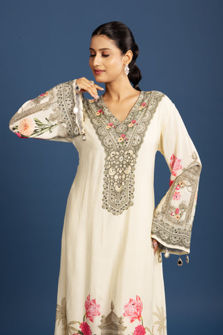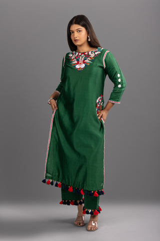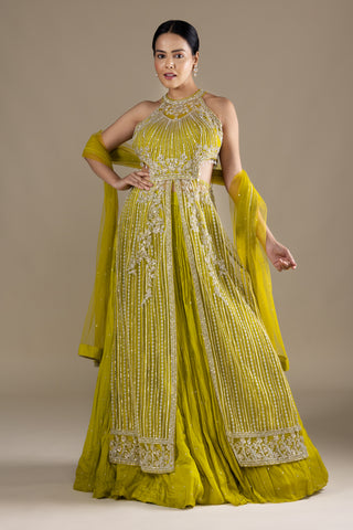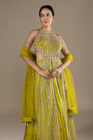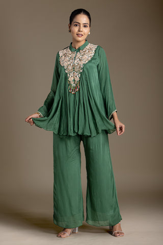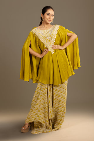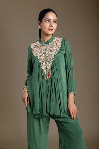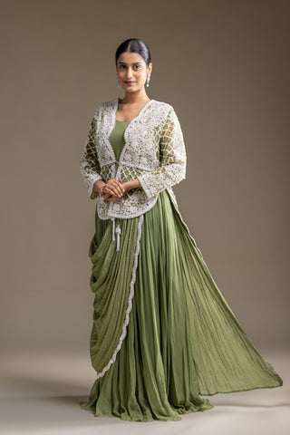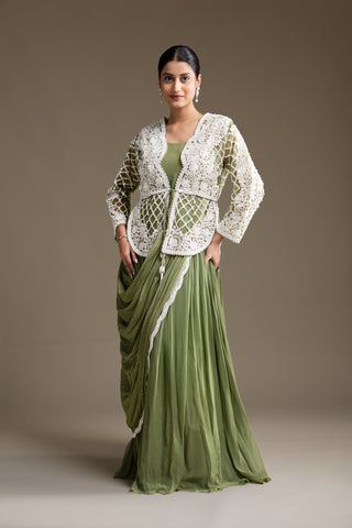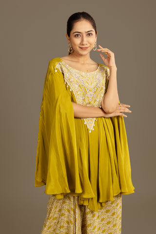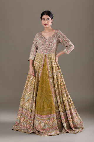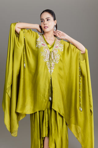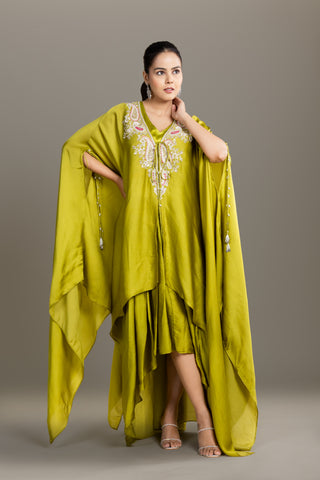Graceful Antique Olive Luxe Flared Kaftan Set