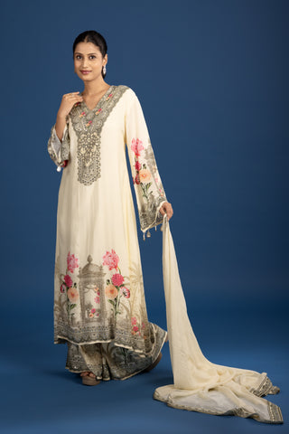 Blush Ivory Floral Embellished Lehenga with Tulle Dupatta