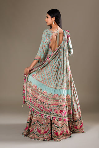 Misty Aqua Blue Anarkali Lehenga with Heavy Mirror Work