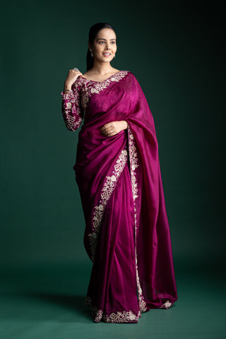 Midnight Teal Luxe Designer Saree with Hand Embroidered Borders