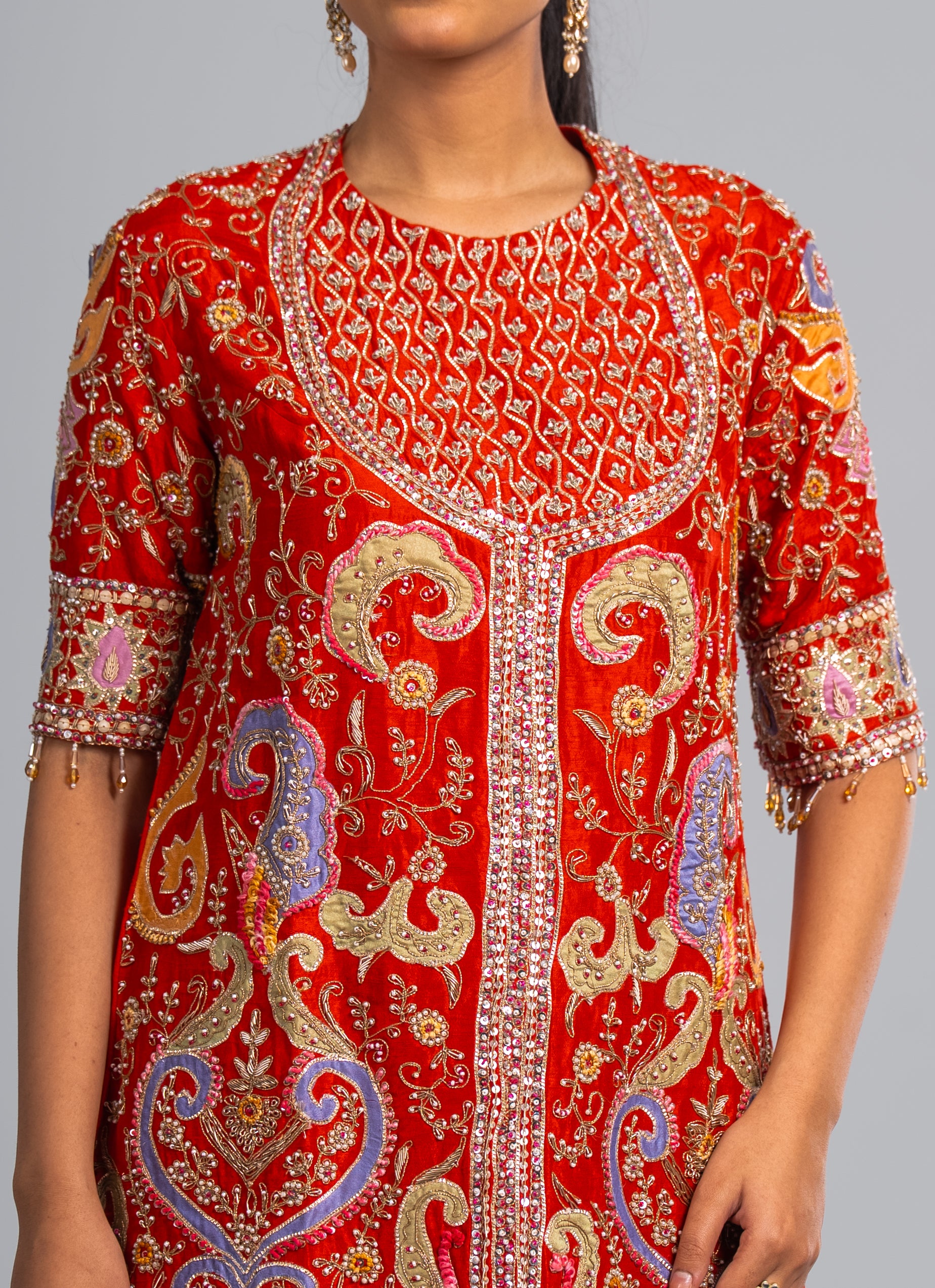 - Work : zari, beads , Cutdana and thread embroidery