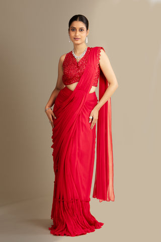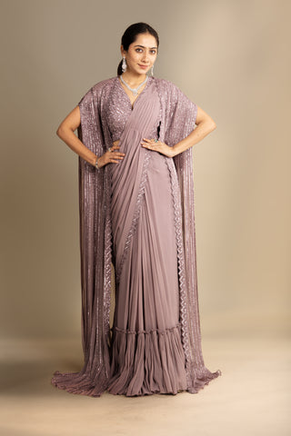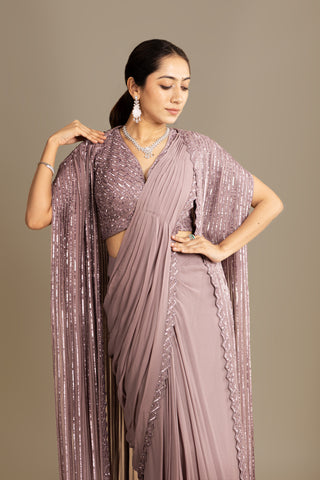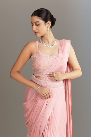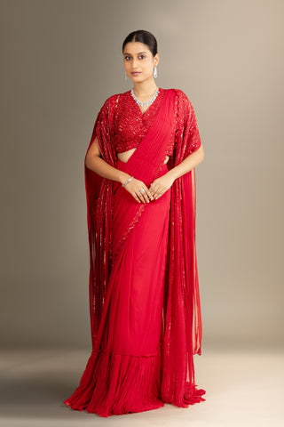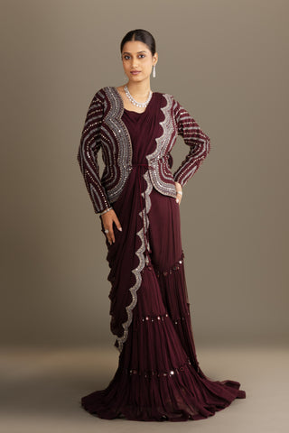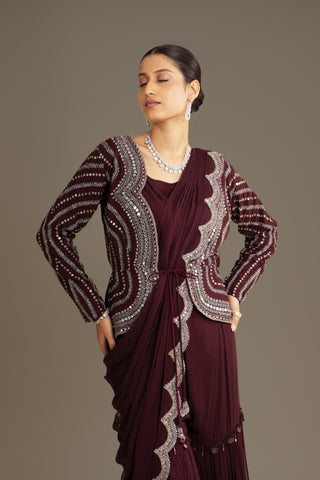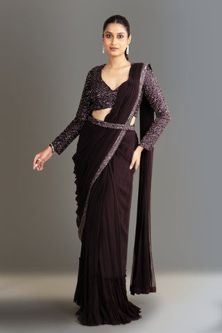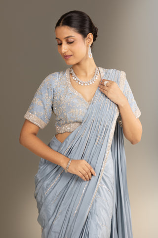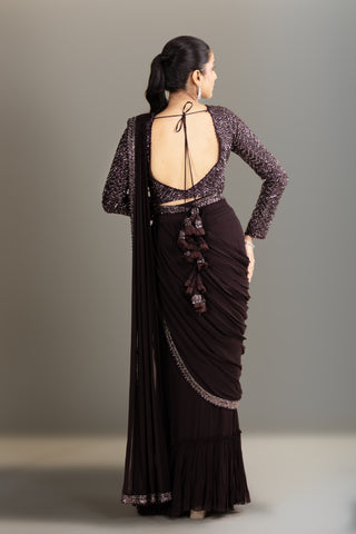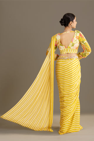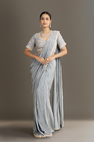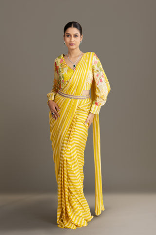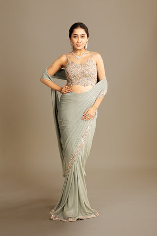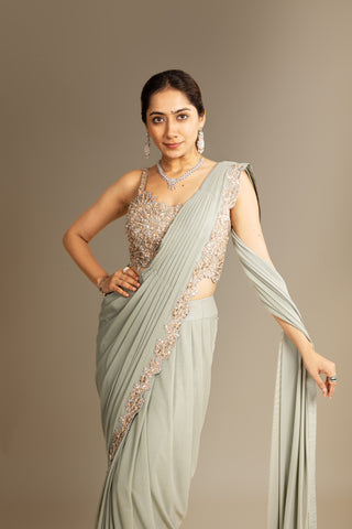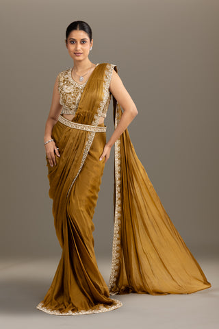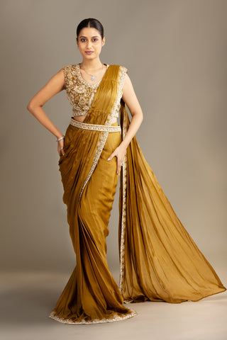 Antique Gold Drape Saree with Hand Embroidered Blouse