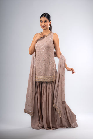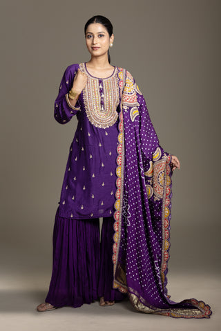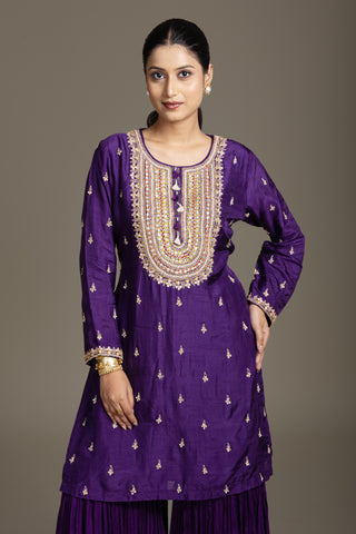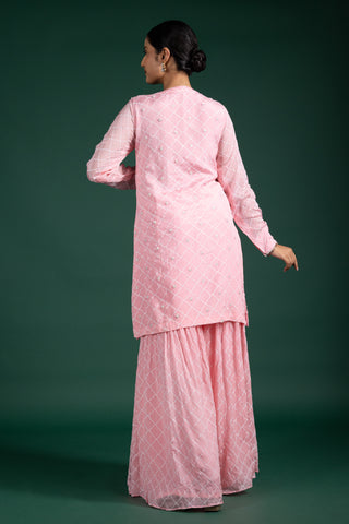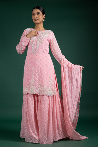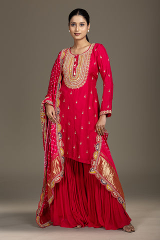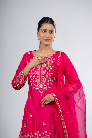 Vibrant Fuchsia Pink Kurta Sharara with Golden Accents