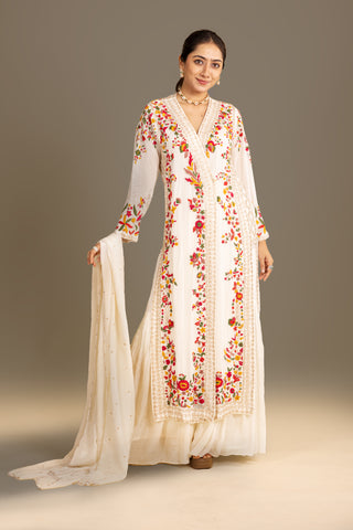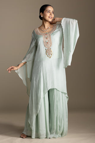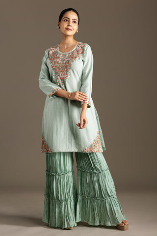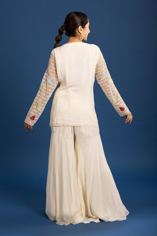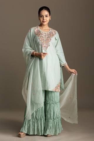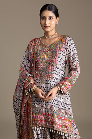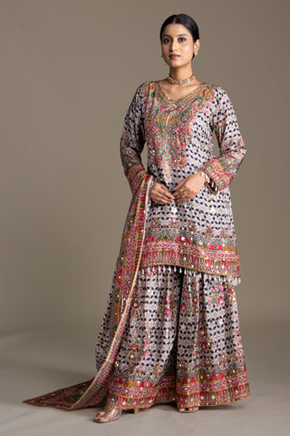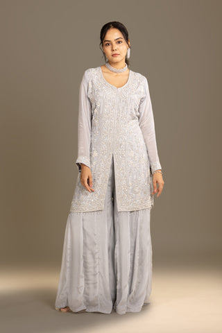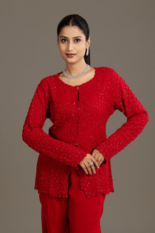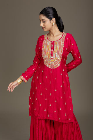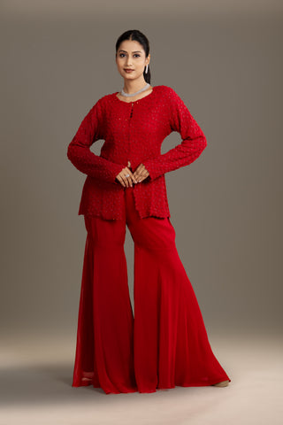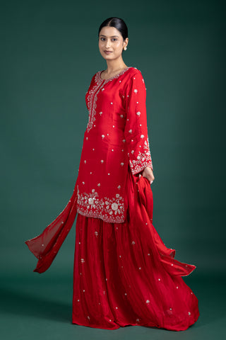 Scarlet Red Sharara with Embroidered Silver Detailing