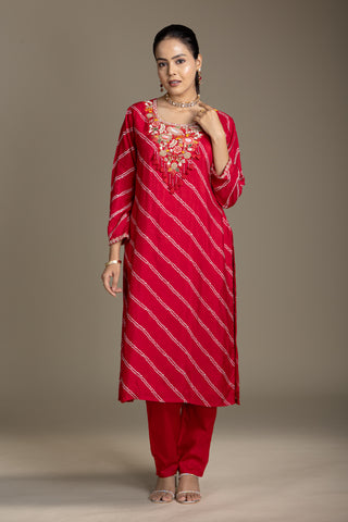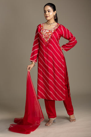 Festive Fuchsia Kurta Set with Floral Printed Dupatta