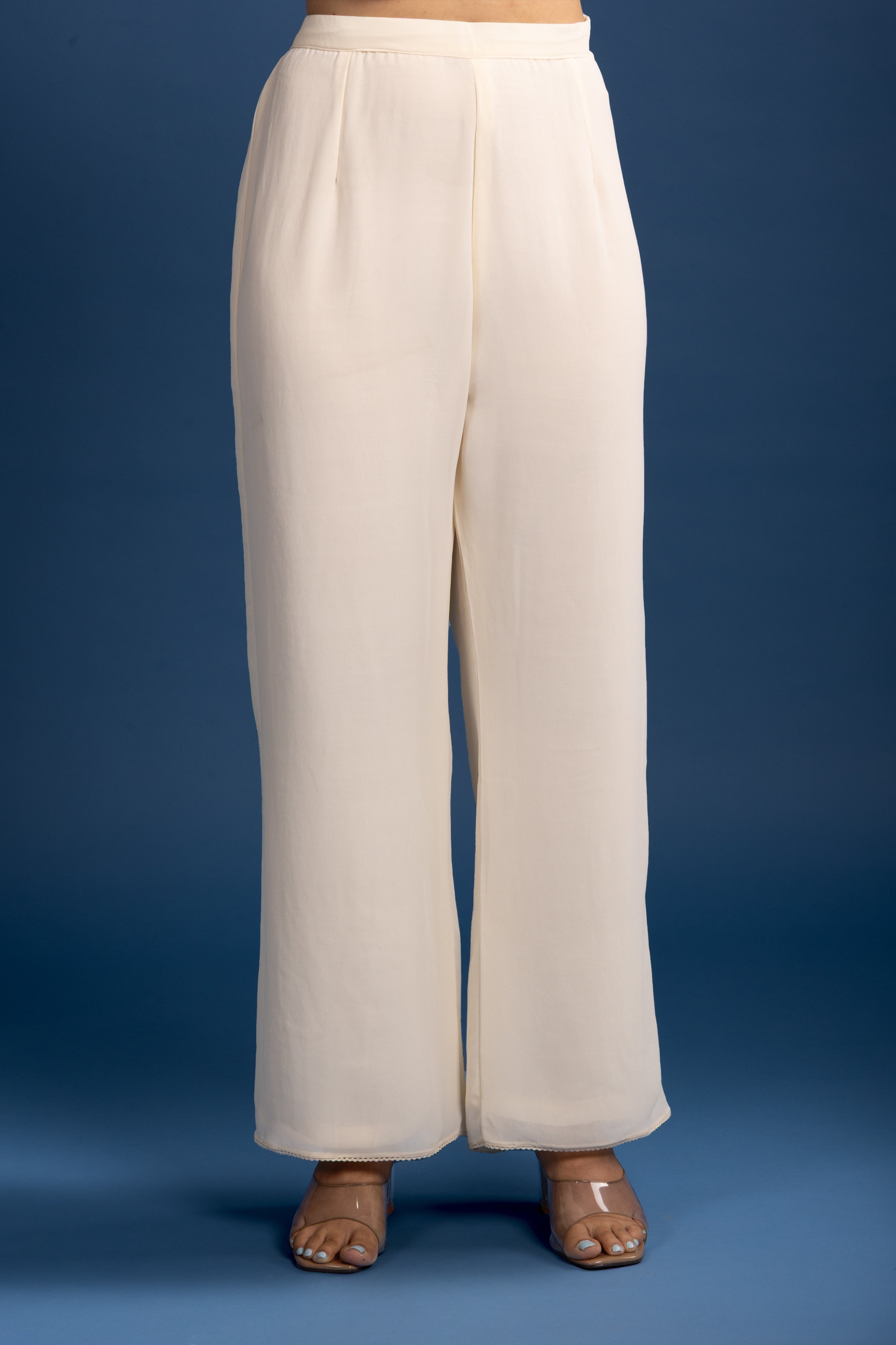An elegant ivory co-ord set featuring intricate embroidery with gold accents, perfect for understated glamour with a touch of timeless sophistication.