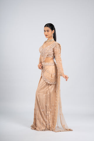 Emerald Illusion Mirrored Jacket with Pre-Draped Garara & Crop Top Set