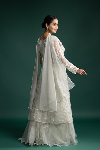Mint Green Sheer Embroidered Net Jacket with Inner Dress