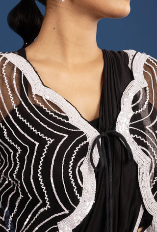 "Black Noir Saree with Delicate ivory Hand-Embroidered Cape"