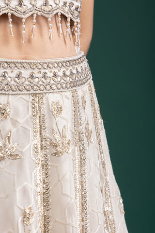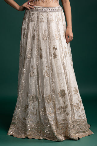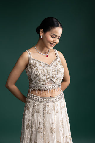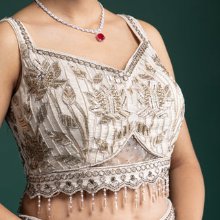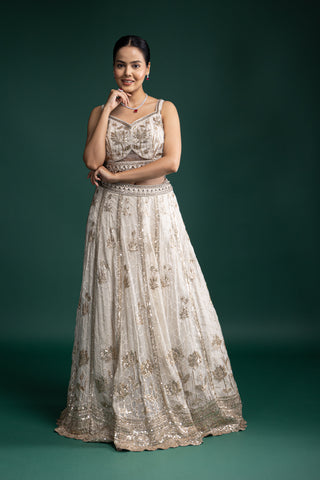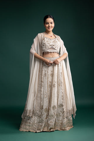 Ivory and Gold Zardozi Embroidered Lehenga for Regal Celebrations