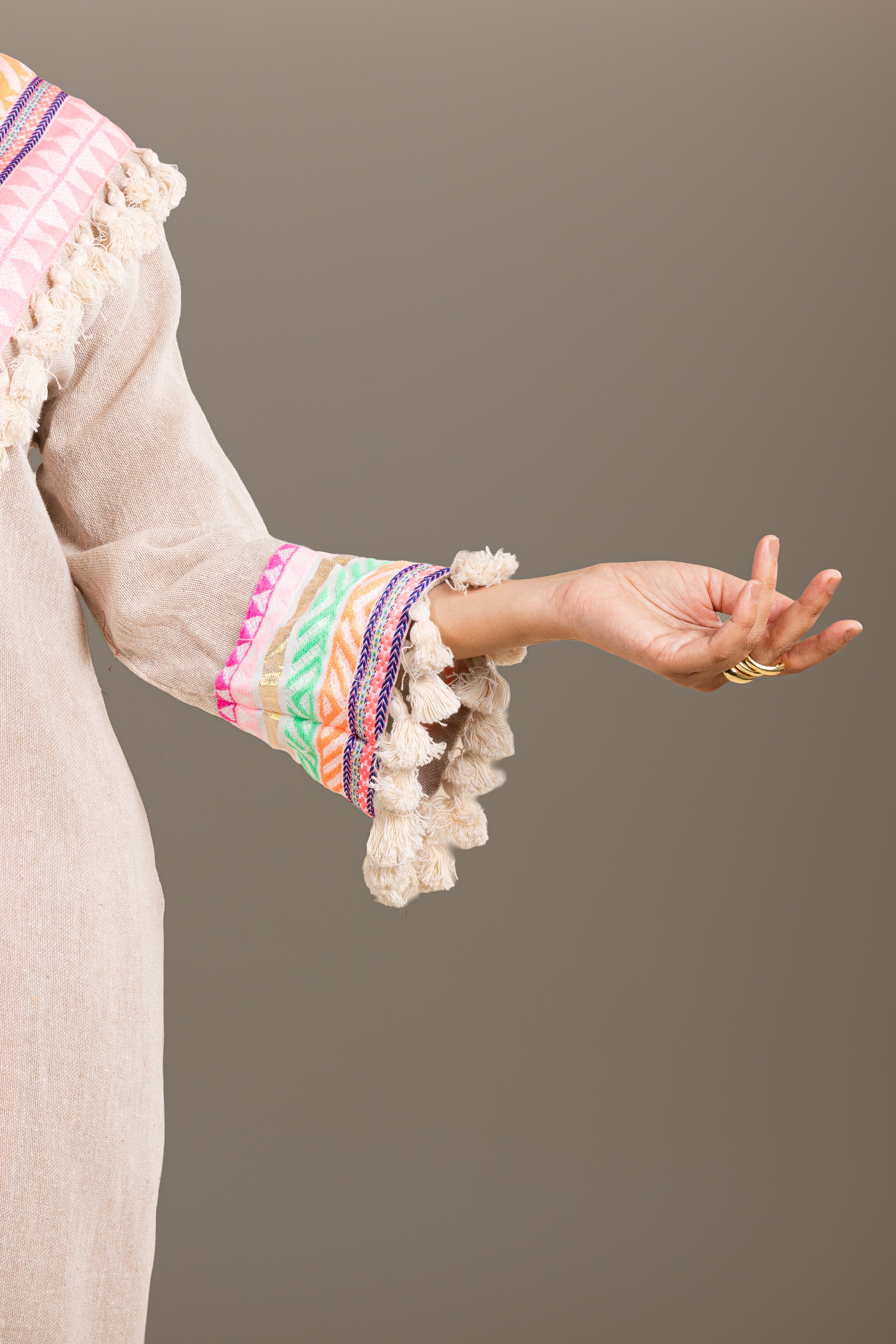 Due to the artisan-led craftsmanship involved in creating our garments and variations in individual display settings, slight differences in color, texture, or pattern may be present, reflecting the unique character of each clothing piece.