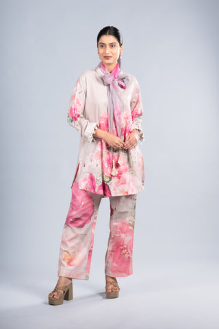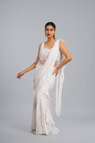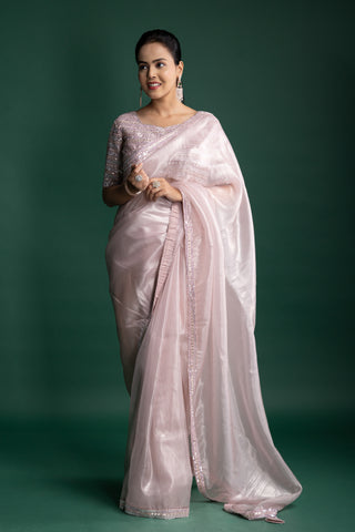 Statement Mauve Pink Embellished Gown with Beaded Fringe Sleeves