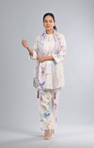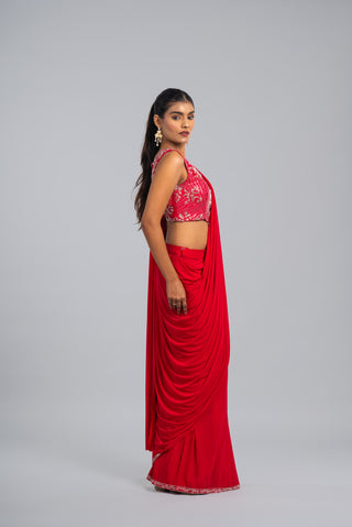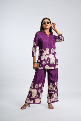 Imperial Plum Hand-Embroidered Gown with Flowy Skirt Detailing